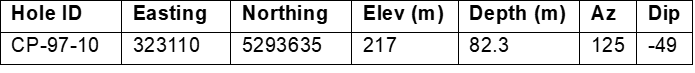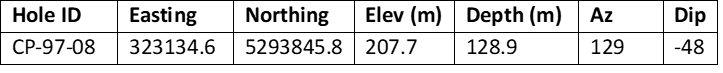 Historical and Infill Drill Sampling Results, Carbonear Property. Drill hole location. NAD83 UTM Zone 22. Drill hole location. NAD83 UTM Zone 22.