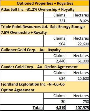 These projects provide the Company with diverse exposure to varying stages of exploration and development, ranging from gold exploration in the emerging Gander Gold Belt to the development of the Great Atlantic Salt deposit in western Newfoundland by Atlas Salt, a related company. All of these projects have the potential to further materially impact the value of the company.